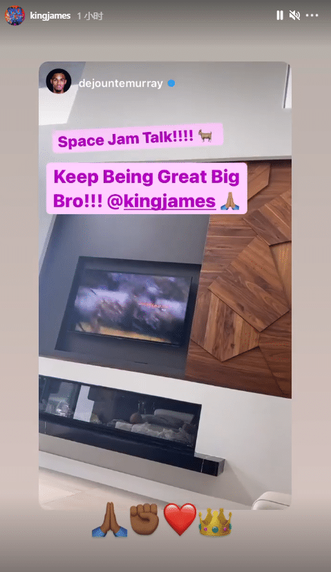 马刺新星穆雷晒出观看詹姆斯电影的画面,配文:大哥,继续创造伟大。