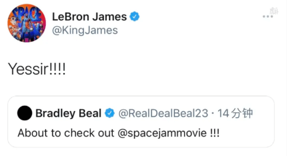 奇才球星比尔发推:马上就要看《空中大灌篮之新传奇》了!