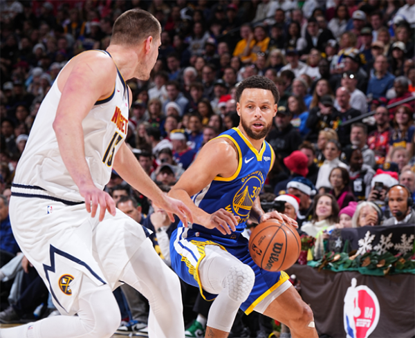 上半场,库里5投1中4分2助攻1篮板,约基奇5投1中6分6篮板4助攻。