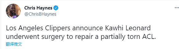 来源:JRS直播网07-14 11:31JRS直播网7月14日讯 ,快船当家球星“小卡”莱昂纳德的真实伤情终于确定,据名记海耶斯报道,快船官方宣布,科怀-莱昂纳德遭遇右膝前十字韧带部分撕裂,已经成功接受了修复手术,小卡暂时没有回归时间表,医学专家:至少伤停9个月。