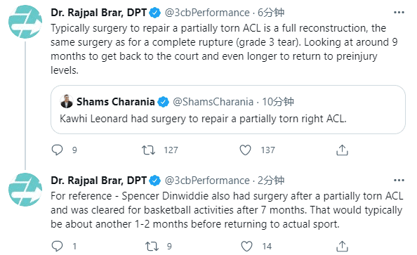 随后媒体也迅速跟进了伦纳德的伤情,根据多名医疗专家的分析,伦纳德的伤病至少是十字韧带撕裂二级,这也意味着伦纳德至少需要休息9个月,而且伦纳德想要恢复到此前的状态,他需要更多的休息时间。