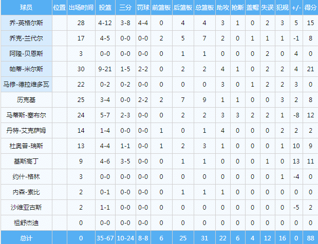 澳大利亚如何赢下美国男篮,原因还是从数据上可以看得见,本场比赛澳大利亚男篮68次出手36次命中,命中率高达52.9%,三分球24次出手有10次命中,三分命中率达到41.7%,罚球则是10中9,罚球命中率90%,澳大利亚男篮在本场比赛的三项命中率高达184.6%,全队命中率进入180俱乐部,就可以想象澳大利亚得分堪称砍瓜切菜,他们的进攻效率很高,也从侧面展示了美国男篮的防守极为糟糕。
