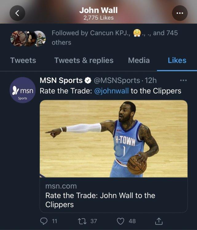 来源:JRS直播网07-13 11:04JRS直播网讯 北京时间7月13日,外媒建议快船和火箭进行一笔4换1的交易,快船送出马库斯-莫里斯、贝弗利、朗多和肯纳德,得到火箭的后卫约翰-沃尔。有趣的是沃尔本人在社媒上点赞了这笔交易方案,引起热议。难道沃尔想去快船联手小卡和乔治?