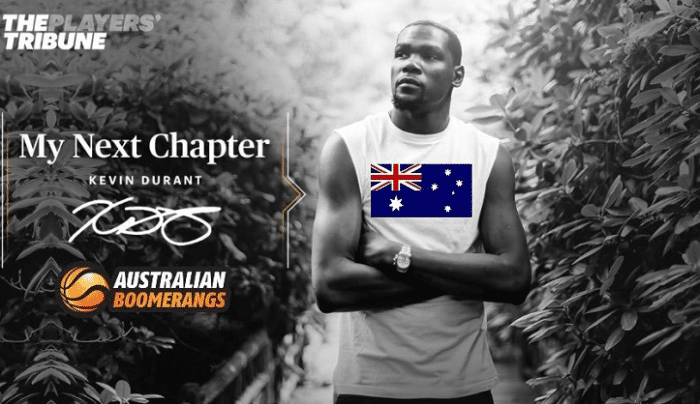 有球迷在社交媒体上晒出了杜兰特的P照,上面的内容是:“my next chapter”我的下一章,这也是外网的一个经典的梗,每一次当有球队击败杜兰特所在球队,或者杜兰特表现不佳导致球队输球的时候,这个“我的下一章”的梗就会被多次提起。同时球迷们还在杜兰特的胸前安排上了澳大利亚的国旗,意思是“下一站澳洲”。