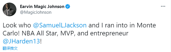 来源:JRS直播网07-13 10:34JRS直播网讯 北京时间7月13日,在国外度假期间,湖人名宿魔术师偶遇哈登,晒合影并且发推:看看我和塞缪尔在蒙特卡洛(摩纳哥城市)遇到了谁!NBA全明星、MVP以及企业家詹姆斯-哈登!
