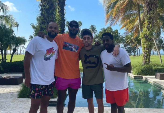 詹姆斯在今天更新社交平台,晒出他在波多黎各度假的照片,陪同詹姆斯一起度假的还有波多黎各歌手巴尼,而在最终合影留念中,还看到了杜德利的身影,詹姆斯不忘给自家龙舌兰酒打广告。在经历了本赛季的失败后,湖人总经理佩林卡曾表示,休赛期还是要围绕詹姆斯和戴维斯建队,他们拥有话语权。按照目前的态势,和詹姆斯关系不佳的库兹马,有可能会被交易,此外湖人也许会竞争丁威迪、德罗赞,继续补强球队,这个夏天老詹虽然不参加奥运会,但是他也很忙,新电影《空2》也马上要上映了。