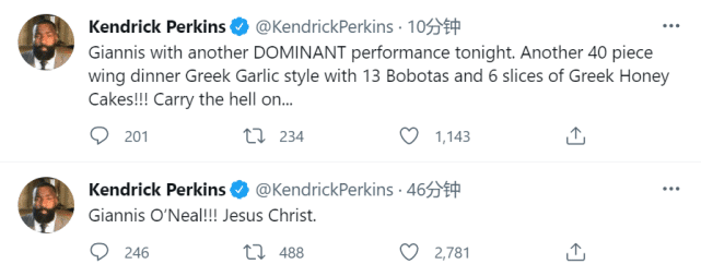 此时,美国媒体也发出了此前NBA名宿,现任评论员肯德里克-帕金斯批评字母哥的言论,帕金斯此前曾直言“字母哥只配当罗宾,而米德尔顿才是蝙蝠侠。”但是,字母哥在总决赛的疯狂表演,无疑将其狠狠打脸。值得一提的是,观看了本场比赛的帕金斯,也连续发推狂吹字母哥,他甚至将字母哥比作了奥尼尔。