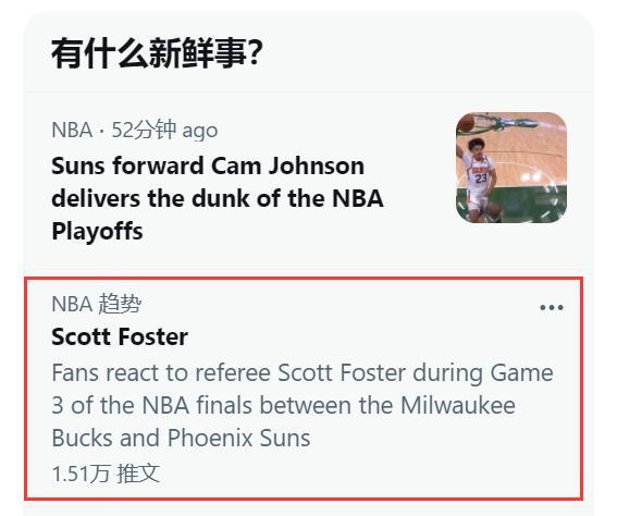 另外,本场比赛执法的主场福斯特也登上了推特热搜榜,今晚的比赛出现了几次争议判罚。比如第二节末米德尔顿强突艾顿造成犯规,但此次判罚并不是站在底线的裁判吹罚的,而是站在中线的福斯特吹了,直接给艾顿吹了第3次犯规,剪接造成后者需提前下场;第三节,保罗强突又被福斯特吹成进攻犯规,保罗当时就吐槽了这个判罚。根据统计,在季后赛福斯特执裁的比赛中,保罗的战绩为0胜12负。这样的吹罚纪录,NBA这样的安排,也难免不令球迷讨论。