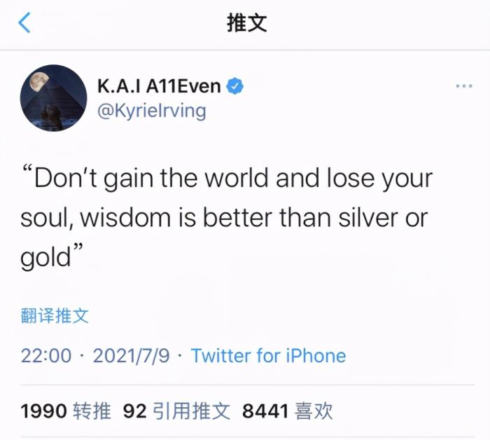 哲学家上线!欧文发推特:不要丢失自己的灵魂,智慧远比金钱重要