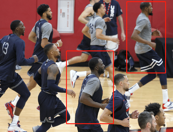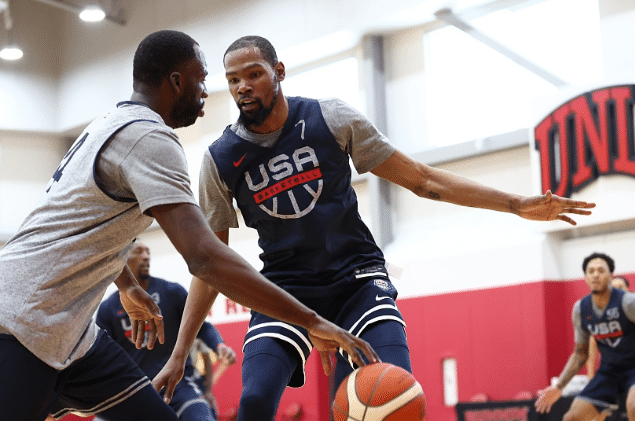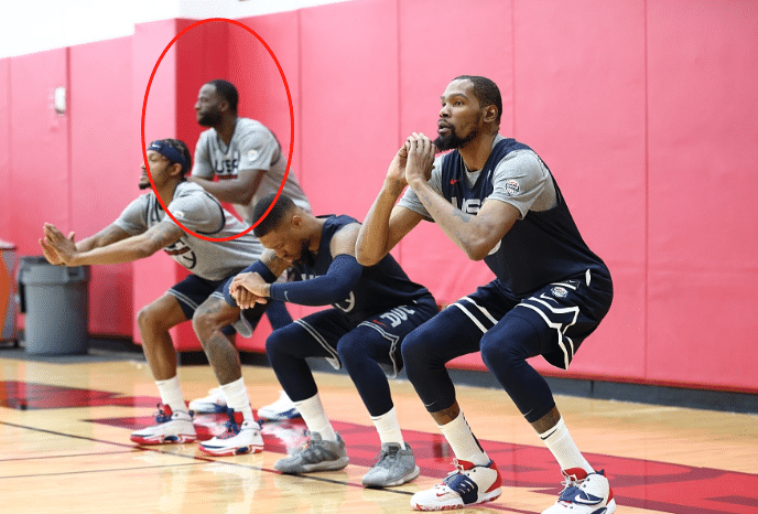 美国男篮集训,从杜兰特和追梦格林的站位来看,两人矛盾很深啊