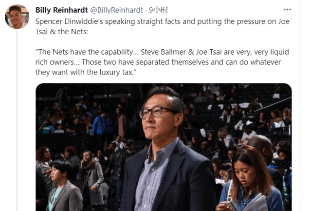 来源:JRS直播网07-11 11:14JRS直播网讯 ,篮网球员丁威迪最近再次谈到了自己的合同问题。在丁威迪看来,他认为篮网老板蔡崇信并不差钱,可以没有任何压力应对奢侈税。