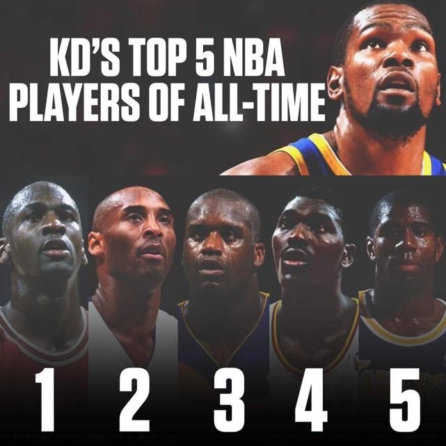 杜兰特曾说过他心中的历史前五是乔丹、科比、奥尼尔、奥拉朱旺和魔术师,詹姆斯曾在2013年提到自己心中的历史前三是乔丹、J博士和伯德。你心中的历史前五是哪些球星呢?