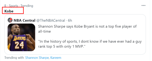 科比冲上热搜!名嘴谈黑曼巴历史地位:只拿1个MVP进不了前五