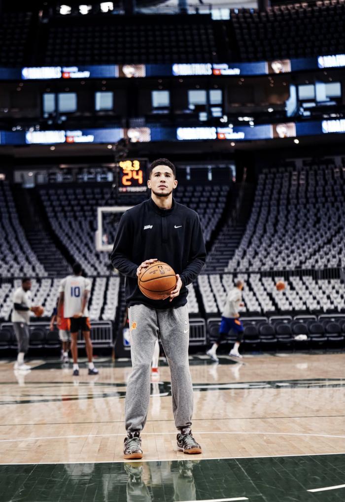 太阳备战G3!保罗带伤眼神专注,布克穿科比战靴乐开怀+调侃塔克