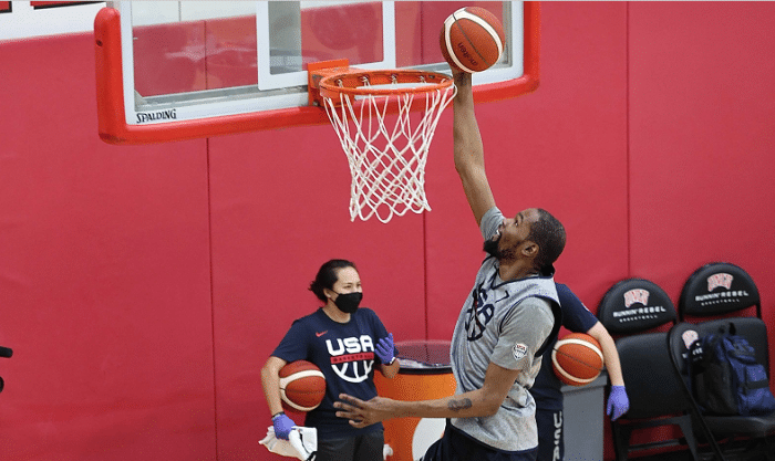 来源:JRS直播网07-10 11:26JRS直播网讯 今天美国男篮队员杜兰特接受采访,他谈到了很多关于奥运会相关的话题,其中就包括了为奥运会期间没有观众而感到遗憾,不过自己也可以理解这样的做法,毕竟疫情带来的冲击已经让赛事延期了一年。杜兰特还点评到了25日首战对手法国队,实力很强,还表示自己俱乐部的队友鲁瓦乌根本就防不住自己,他期待在国家队的赛场上朝他喷垃圾话。