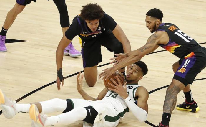 来源:JRS直播网07-09 15:45JRS直播网讯 北京时间7月9日,刚刚结束的一场NBA总决赛较量,太阳118-108战胜雄鹿,系列赛大比分来到太阳2-0雄鹿。本场比赛太阳这边保罗得到23分4篮板8助攻的全面数据,依旧是太阳赢球的重要功臣。