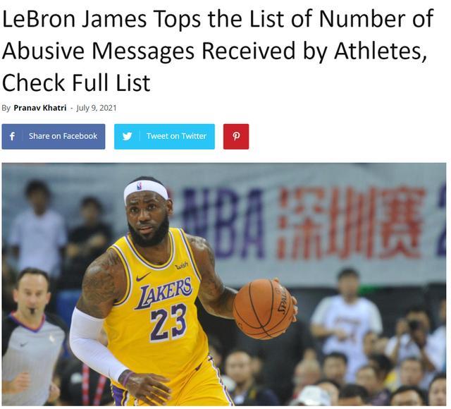 在推特被骂最多的运动员:詹姆斯、拉什福德前二