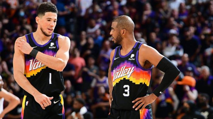 有人认为是保罗,因为他到来对这支球队的提升明显,改变了球队文化,推动两位年轻核心成长,另外在比赛中的掌控力和阅读能力有目共睹,同时还是今年MVP榜单前五的球员!也有人认为是布克,他成长迅速,防守进步很大,季后赛多次打出代表作,尤其是缺少保罗的西决前两场,打湖人也是如此,数据也比保罗出色!