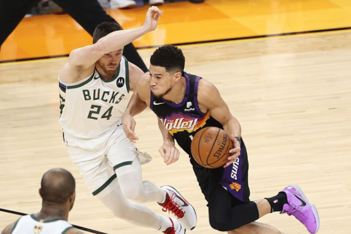 来源:JRS直播网07-09 11:17JRS直播网讯 北京时间7月9日,NBA总决赛G2继续进行。这场比赛,雄鹿开局打得相当主动,然而太阳的三分球实在神准。来到第二节,太阳利用防守和团队进攻,完全扭转局面。半场比赛,太阳投进11记三分球。上半场战罢,太阳56-45领先11分。而字母哥也罕见激情演讲激励全队。