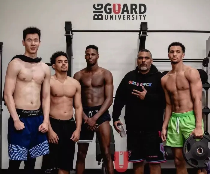 开个玩笑!能看出郭昊文一直被诟病的体型壮硕不少,虽然跟旁边的壮汉们相比依然有差距,但进化程度瞎眼可见。