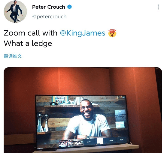 来源:JRS直播网07-08 10:48JRS直播网讯近日,前英格兰国脚前锋彼得-克劳奇在社交媒体上晒出了一张自己和NBA球星詹姆斯视频畅聊的照片,配文" 和詹姆斯的Zoom通话。多么好看的壁挂。"
