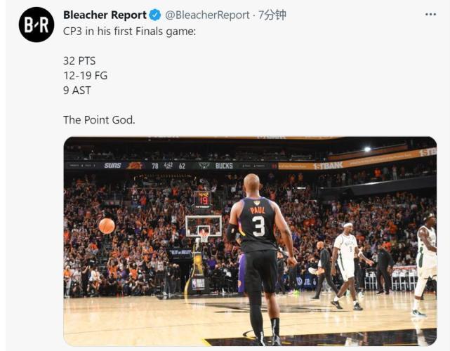 这场比赛,尽管是第一次打总决赛,但36岁的保罗显然将这场比赛变成了自己的“表演时刻”,他首节0分,但第二节11分、第三节16分,末节5分收下比赛。比赛里,保罗利用自己的经验多次完成小打大,“军训”洛佩兹、波蒂斯和字母哥,最终轰下32分4篮板9助攻1抢断。