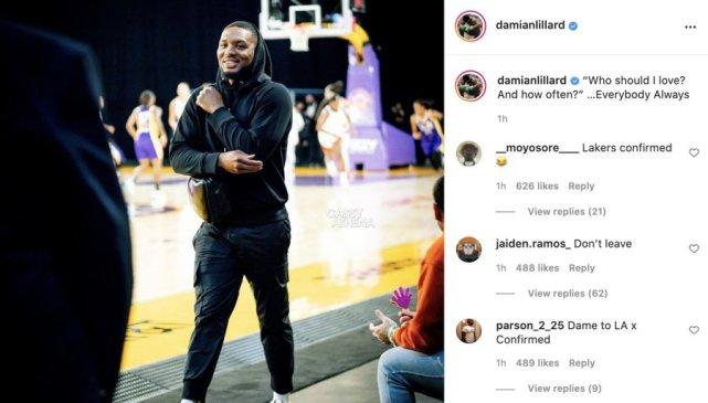 利拉德暗示下一站湖人?最新社媒晒图引热议:爱谁又能爱多久