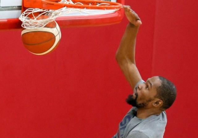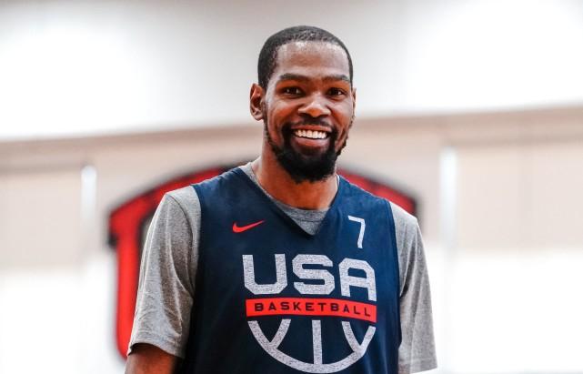 美国男篮训练开启!杜兰特秀暴扣,波波调侃:他若不来我会哭着求