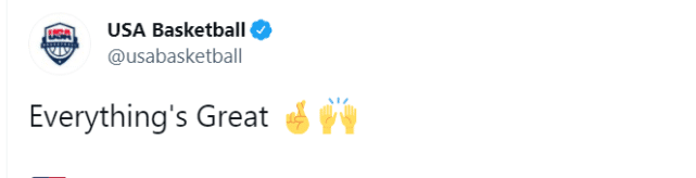 来源:JRS直播网07-07 15:08JRS直播网讯 北京时间7月7日,美国男篮在拉斯维加斯迎来第一天正式训练,除了正在征战总决赛的霍乐迪、米德尔顿和布克,其他九位球员已经全部到位。主帅波波维奇带领他们和陪练队的成员一起进行了投篮和战术的演练,杜兰特在训练中连秀跳投暴扣,状态十分出色。美国男篮的官方社媒晒出照片后,还配文写道:“一切都很棒!”