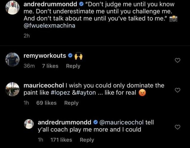 来源:JRS直播网07-07 15:06JRS直播网讯 北京时间7月7日,德拉蒙德在社媒上回复一个球迷的言论,明显对自己上赛季的出场时间感到不满。球迷写道:“我希望你能像洛佩斯和艾顿那样统治禁区,动点真格的。”庄神的回应是:“告诉你们教练,多给我点出场时间,我可以的。”