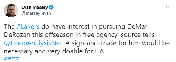 31岁德罗赞将在休赛期成为自由球员,本赛季为马刺出战61场常规赛,场均可以轰下21.6分4.2篮板6.9助攻,已经连续八年场均轰下20+;目前湖人薪资空间有限,根本不可能直接签下德罗赞,现在库兹马多次陷入交易流言之中,很明显湖人会在休赛期调整阵容,继续围绕詹姆斯和浓眉打造冲冠阵容。