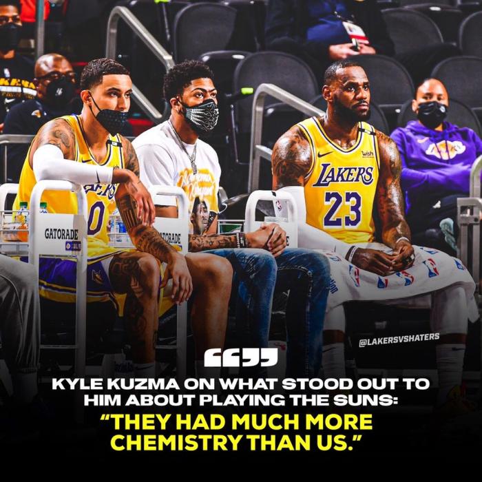不久前,库兹马也有争议言论,谈到季后赛首轮被太阳淘汰出局,库兹马表示:他们队的化学反应比我们强太多。