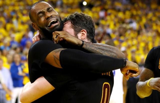 5年前,也就是2016年总决赛,骑士队成为第一支在总决赛1-3落后成功翻盘的球队,结束了克利夫兰长达52年的冠军荒。詹姆斯拥抱乐福,喜极而泣!