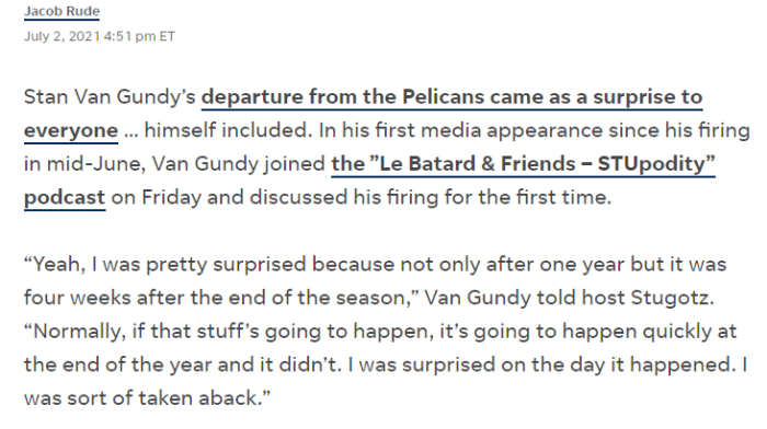 大范或不满被鹈鹕炒鱿鱼,表示并非共同决定,指出锡安存在短板
