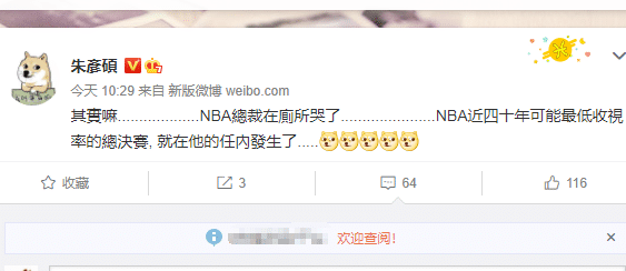 总决赛收视率新低?名嘴调侃NBA总裁厕所哭晕,全球市场或爆发