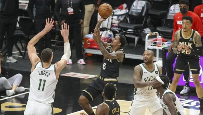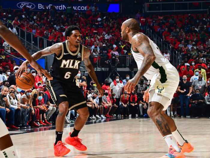 特雷-杨的伤缺无疑让整个亚特兰大都蒙上了一层重重的阴影,因此,主教练麦克米兰也只能选择把路威放到首发的阵容之中。众所周知,路威曾经是NBA最佳第六人级别的顶级替补,选择让他来到先发阵容也无疑是麦克米兰的一场豪赌。可是万万没有想到的是,在G4的比赛之中,路威在首发出战的35分钟时间里,9投7中,以90%的真实命中率豪砍21分5篮板8助攻的高效数据,并且帮助老鹰队一举拿下了G4的胜利。