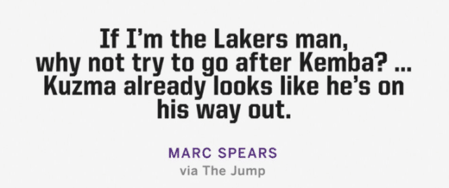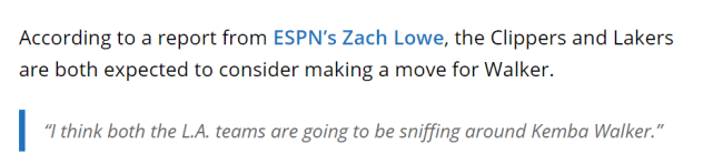 又要抢人了?曝湖人快船都有兴趣换来沃克!名记建议送走库兹马