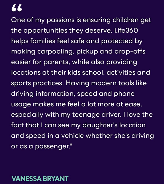 瓦妮莎在社交媒体上宣布:“想让你知道我最近投资了Life360。我们的家庭已经使用了这个App数年,我很兴奋和自豪能向他们提供我的声音和想法。”