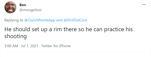 西蒙斯在洛杉矶购置房产的消息出来后,已经有球迷建议他赶紧在新家安装篮筐,好好提升一下自己的投篮。