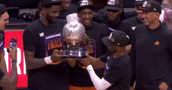最后也恭喜太阳、保罗、蒙蒂和布克和所有的太阳球迷们,他们经历了去年复赛的8战全胜都无缘季后赛,到今年直接以西部第二名时隔11年晋级到季后赛,同时再不被看好的情况下时隔28年夺得西部冠军,恭喜太阳,也希望保罗和艾顿等人总决赛好运。