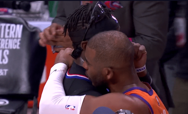这场比赛结束之后,太阳拿下季后赛西部冠军,晋级总决赛;快船则是无缘晋级,2-4被淘汰出局,球员、老板和球迷们的反应也不都不同。末节最后乔治和快船首发阵容被换下场,快船老板鲍尔默率领全场斯台普斯球迷掌声鼓励,作为联盟最出名也是最狂热的老板,无缘总决赛,但鲍尔默和球迷们依旧给球队送上掌声。