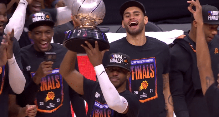 保罗第一个捧起西部冠军奖杯,自曝晋级真实心情,拥抱队友疯狂庆祝
