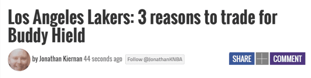来源:JRS直播网06-28 14:58JRS直播网讯北京时间6月28日,美媒LAKESHOWLIFE为湖人休赛期引援支招,他们列出了三条理由,指出湖人应该力争换来国王神射巴迪-希尔德,并给出了一套3换1的交易方案。美媒认为希尔德能够成为詹眉的好搭档,提升湖人的实力,有助于他们在2021-22赛季继续冲击总冠军。