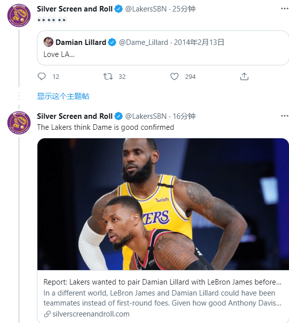 第二、利拉德昔日示爱湖人的推文被挖出来
