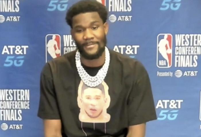 但从太阳球员赛后的表情来看,显然他们认为晋级总决赛近在咫尺了,相互开启了互吹模式!保罗表示布克是最老的24岁(成熟)称赞艾顿打得很有侵略性!布克表示艾顿的绰号是“统治级艾顿”表示自己在保罗身上学到了许多!艾顿则表示保罗是自己的老大哥没见过比他更爱篮球的人,还穿着布克的T恤出席发布会!