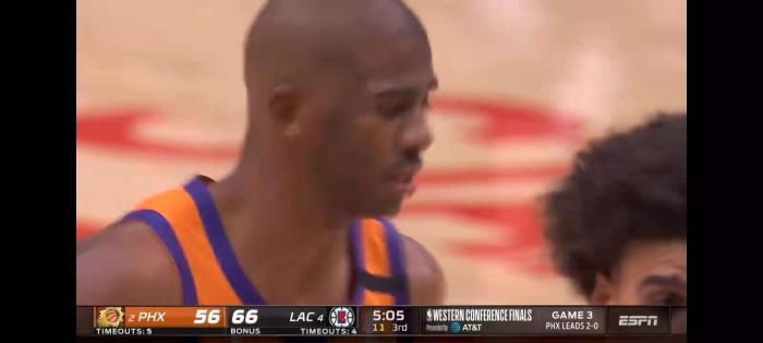 上半场比赛,太阳队一度落后,但是关键时刻保罗挺身而出,虽然保罗上半场的投篮仅仅10投2中,但是保罗交出的8助攻0失误以及导演了一波14:4的进攻高潮让球队占据了上风。