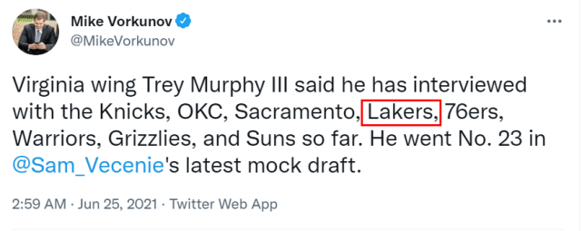 从面试的这三位新秀来看,湖人似乎打算用22号签补充一位擅长投三分的得分后卫或者小前锋。2020-21赛季,湖人的三分球命中率只有35.4%,排名联盟第21位。