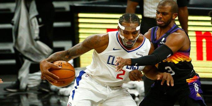 快船首节29-21领先太阳8分,期间镜头给到小卡,快船领袖并没有坐在替补席,而是坐在斯台普斯球馆的包厢里,和老婆孩子一起看比赛,小卡抱着孩子看比赛,身穿黑色连帽卫衣、戴着棒球帽十分低调,面无表情;自从西部半决赛G4受伤之后,小卡已经因伤连续缺席5场比赛。