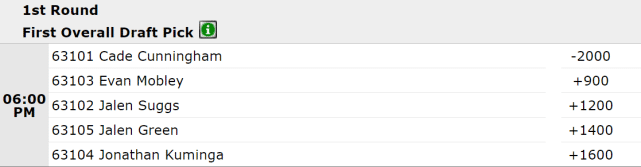 2021年状元赔率出炉!坎宁安遥遥领先,最新模板:塔图姆+东契奇
