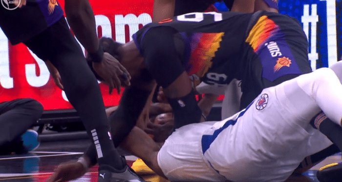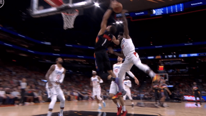 来源:JRS直播网06-23 10:20JRS直播网讯 北京时间6月23日,太阳和快船西决第二场,首节开场没多久,场上就发生激烈的身体接触,太阳悍将克劳德倒地和乔治拼抢球权,小莫里斯为队友抱不平,推了一把克劳德,最终两人都吃到技术犯规。